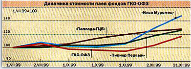 1. В целом, принимая во внимание то, что мы живем в России, 1999 год для управляющих компаний был обычным нормальным рабочим годом, может быть, чуть более благоприятным и конструктивным, чем предыдущий. Особенно богаты на события были вторая половина декабря и последние дни месяца, которые оказались весьма успешными для паевых фондов и для всех инвесторов, размещающих средства в российские ценные бумаги.